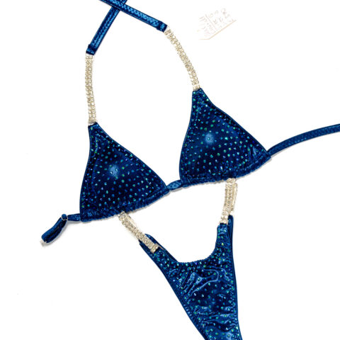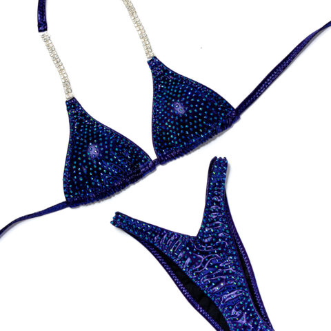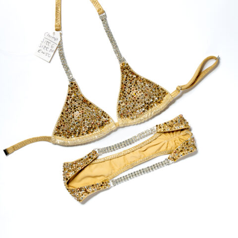 Bikini bodybuilding suits, ready when you are. These stage-ready bikinis are pre-made, available in a range of colours, cuts, and sizes, and can ship fast.